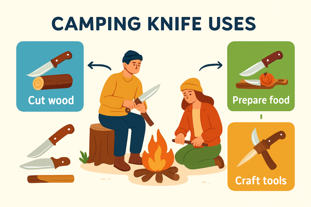 Le couteau de camp, véritable pierre angulaire de l’équipement outdoor, s’impose comme un outil de référence pour le bushcraft, la survie en forêt et les séjours prolongés sous tente. On le retrouve fréquemment dans les sacs des randonneurs, des campeurs, mais aussi des militaires en mission nature. Grâce à une lame fixe, généralement comprise entre 9 et 13 centimètres, il permet d’assurer toutes les tâches fondamentales du bivouac : fendre ou couper le bois (notamment pour préparer un feu avec un firesteel), sculpter, préparer la nourriture, allumer un feu avec pierre à feu ou encore construire un abri improvisé au cœur de la forêt ou en pleine campagne.